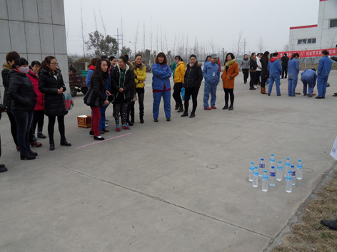 在“三八”國(guó)際婦女節(jié)到來(lái)之際,為豐富節(jié)日期間廣大女職工的業(yè)余文化生活,活躍節(jié)日氣氛,展現(xiàn)女職工愛(ài)崗敬業(yè)、健康向上的精神面貌,公司于3月8日上午在辦公樓前舉辦了文體娛樂(lè)活動(dòng),子公司新泰公司也同時(shí)舉辦了相關(guān)慶祝活動(dòng),總公司活動(dòng)現(xiàn)場(chǎng)設(shè)置了趣味保齡球、定點(diǎn)套圈、沙包投準(zhǔn)、摸石過(guò)河等四個(gè)項(xiàng)目,共9個(gè)代表隊(duì)68名選手參加了比賽。新泰公司共5個(gè)代表隊(duì)45名參賽選手參加了“ 雙腳跳遠(yuǎn)” “腳扔沙包”及“趣味保齡球”三個(gè)項(xiàng)目的比賽,比賽結(jié)束后,對(duì)獲獎(jiǎng)人員進(jìn)行了現(xiàn)場(chǎng)頒獎(jiǎng)。(圖為比賽現(xiàn)場(chǎng))