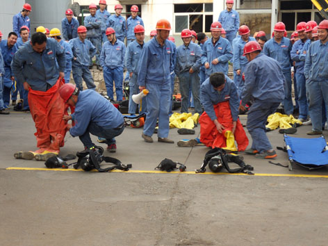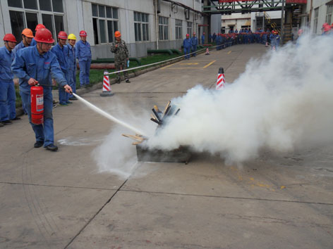 為了進(jìn)一步普及應(yīng)急救援知識(shí),提高公司員工安全意識(shí)和應(yīng)急救援的能力,公司于4月6日上午在三胺老系統(tǒng)生產(chǎn)區(qū)舉辦了應(yīng)急救援技能競(jìng)賽,活動(dòng)分為正壓式空氣呼吸器佩戴競(jìng)賽和使用滅火器滅火競(jìng)賽兩部分。這次應(yīng)急救援技能競(jìng)賽活動(dòng)是公司今年開(kāi)展的“查身邊隱患,保職工安全,促企業(yè)發(fā)展”系列活動(dòng)之一,其目的是通過(guò)活動(dòng)的開(kāi)展,牢固樹(shù)立以人為本,進(jìn)一步強(qiáng)化安全基礎(chǔ)、推動(dòng)安全發(fā)展的理念,促進(jìn)企業(yè)加強(qiáng)教育培訓(xùn),增強(qiáng)廣大職工的安全生產(chǎn)意識(shí)、應(yīng)急救援能力和自我保護(hù)能力,杜絕違章作業(yè),抵制違章指揮,促進(jìn)公司安全生產(chǎn)工作再上新臺(tái)階。本次活動(dòng)由公司工會(huì)和安全處、生產(chǎn)技術(shù)部等共同主辦,各生產(chǎn)車(chē)間、制造部參加了競(jìng)賽??h總工會(huì)常務(wù)副主席朱樂(lè)孝及公司副總經(jīng)理逯劍、安全總監(jiān)李紹勝、公司工會(huì)副主席王曙光等出席競(jìng)賽活動(dòng)。(下圖為活動(dòng)現(xiàn)場(chǎng))