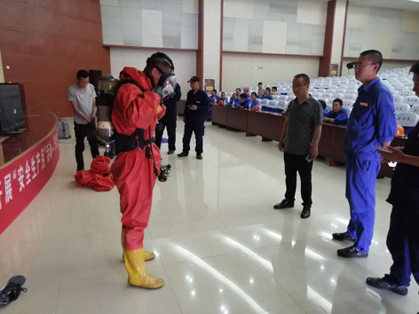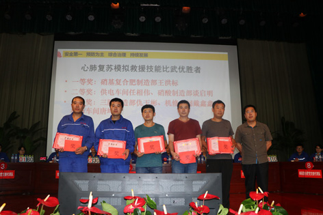 6月21日下午,公司組織各車間、制造部在聯(lián)合會(huì)堂開展了應(yīng)急救援器材比武活動(dòng)。活動(dòng)分正壓式空氣呼吸器、輕型防化服穿戴和心肺復(fù)蘇模擬救援兩個(gè)項(xiàng)目,正壓式空氣呼吸器、輕型防化服穿戴比武共19人參賽,心肺復(fù)蘇模擬救援比武共14人參賽。 正壓式空氣呼吸器、輕型防化服穿戴比賽,原料車間張士營以66秒100分的成績獲得第一名,硝酸制造部孔德庚、三胺制造部唐孝宗獲得二等獎(jiǎng),硝基復(fù)合肥制造部竇榮剛、硝酸制造部咸化玉、硝酸制造部談啟明獲得三等獎(jiǎng)。 心肺復(fù)蘇模擬救援比賽,硝基復(fù)合肥制造部王洪標(biāo)以98%的成功率獲得第一名,供電車間任相偉、硝酸制造部談啟明獲得二等獎(jiǎng),三胺制造部仇玉彬、機(jī)修車間戴鑫鑫、機(jī)修車間唐坤敬獲得三等獎(jiǎng)。